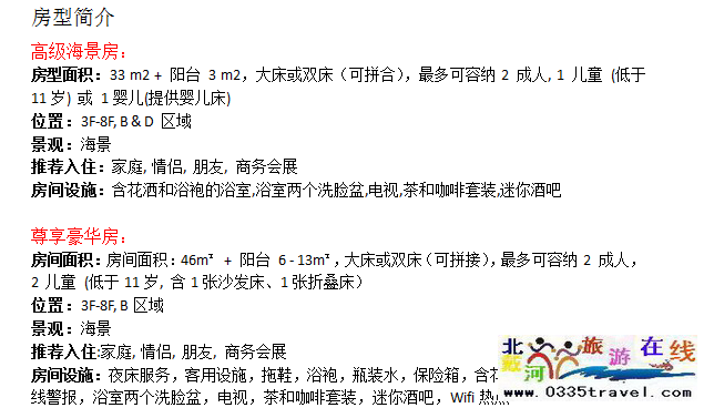 注:6月19日房?jī)r(jià)(含雙早):高級(jí)海景房 1500元 尊享豪華房 1950元 6月20日房?jī)r(jià)(含雙早):高級(jí)海景房 1650元 尊享豪華房 2250元 6月24日房?jī)r(jià)(含雙早):高級(jí)海景房 1550元 尊享豪華房 2080元 6月25-26日日房?jī)r(jià)(含雙早):高級(jí)海景房 2250元 尊享豪華房 3000元 敬請(qǐng)垂詢(xún):13785079044 18633570222 15703350808 |